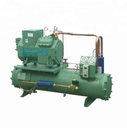 Unità condensatrice raffreddata ad acqua con compressore alternativo semi-ermetico da 3HP, progettata per applicazioni di celle frigorifere e celle freezer, con prestazioni affidabili e prezzi competitivi.
